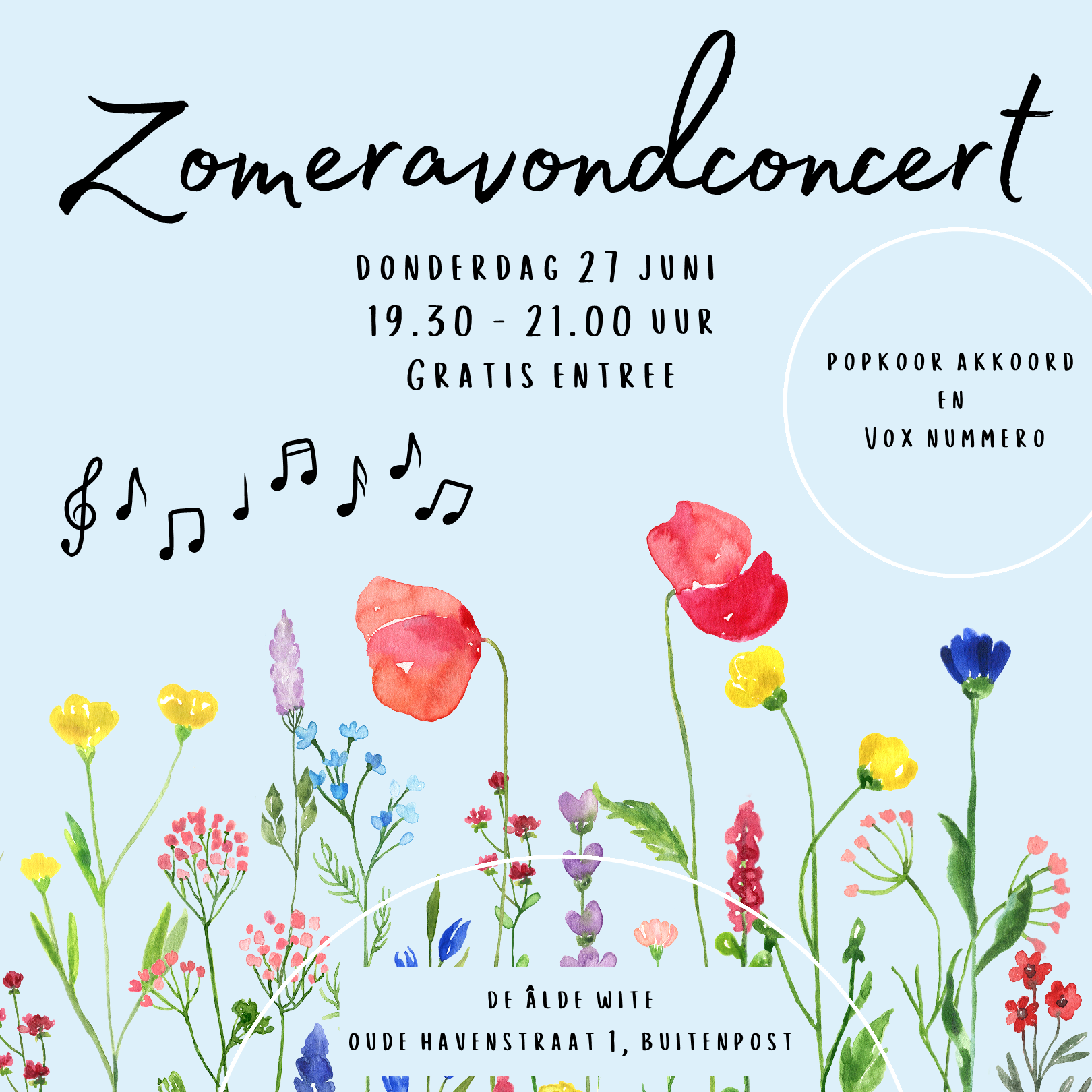 Kom genieten tijdens het zomeravondconcert van Popkoor Akkoord en Vox Numero