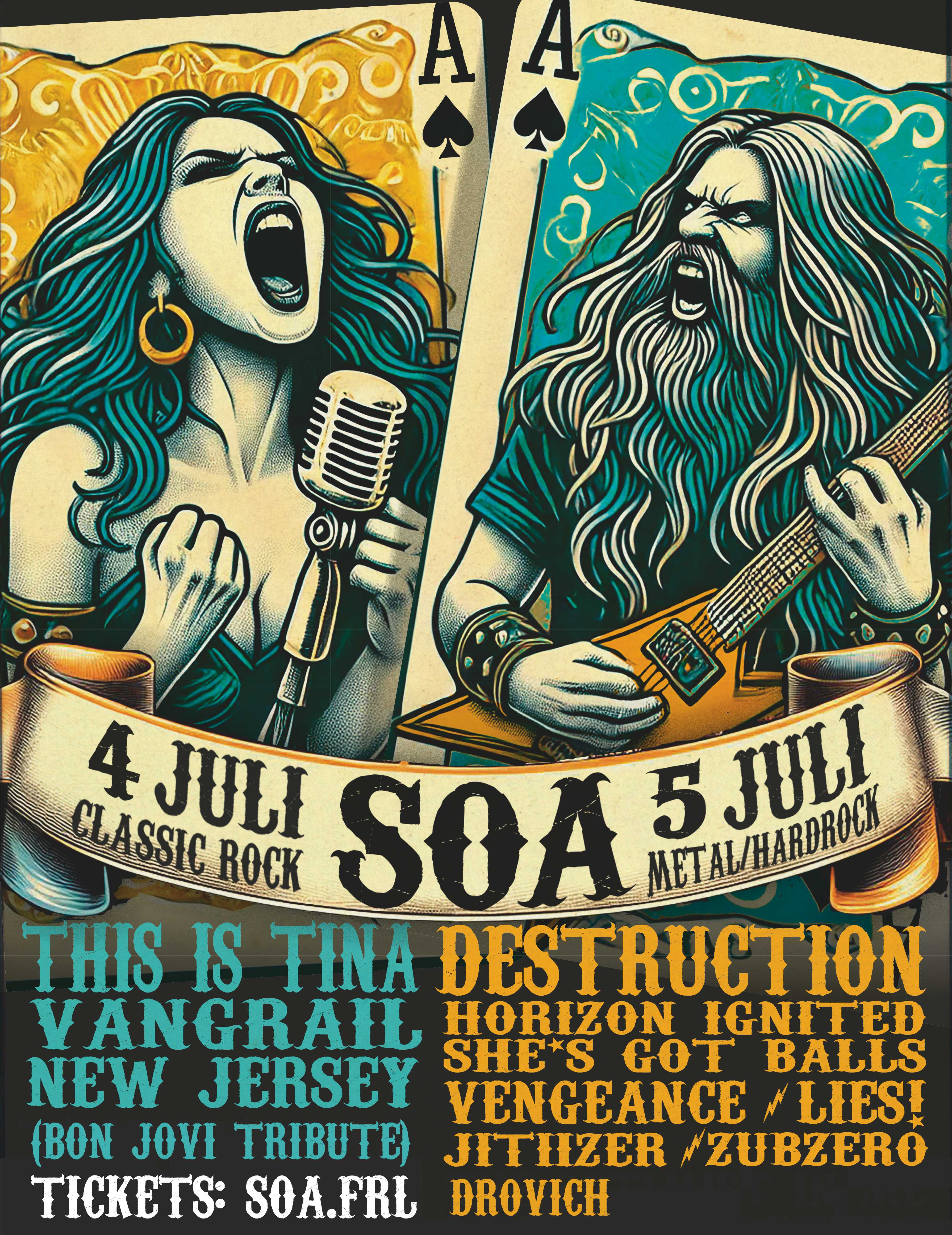 Op zaterdag 5 juli komt het hardere werk aan bod. Dit jaar treden op 2 podia in totaal 7 hardrock- en metalbands op. Ook deze editie is er bewust voor gekozen om meerdere bands uit de regio, zoals Zubzero, Drovich, Lies! en Jitizer te contracteren. Uit Duitsland komt de sinds 1982 bestaande trashmetalband Destruction naar de Pûs in Surhuizum. De sinds 2017 bestaande deathmetalband Horizon Ignited komt helemaal uit Finland naar Surhuizum. Voor wie voorgaande bands net wat te hard zijn is Vengeance vastgelegd. Deze Nederlandse band had met name in de jaren 80 een hit met het nummer Rock ’n’ Roll shower. Naast voornoemde bands met eigen werk treedt er op zaterdag 5 juli ook een tributeband op. De volledig uit vrouwen bestaande band She’s got balls uit Duitsland brengt in hun tribute de grote hits van AC/DC. Net als voorgaande jaren is er, speciaal voor de mensen die het allemaal iets te hard vinden ook dit jaar weer een chillzone.