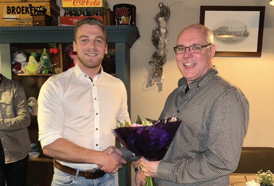 Kornelis waard út namme fan Pleatslik Belang troch Klaas Pool hertlik betanke foar syn jierrenlange ynset. Kornelis hat oanjûn noch wol belutsen wêze sil by de oerdracht. Wy binnen no fansels drok op syk nei in nije oplossing foar it behear fan ús webside. Mochten jo hjir ideeën oer ha, diel se dan mei ús. Op de foto: Kornelis van Dekken wurdt bedankt troch Klaas Pool.